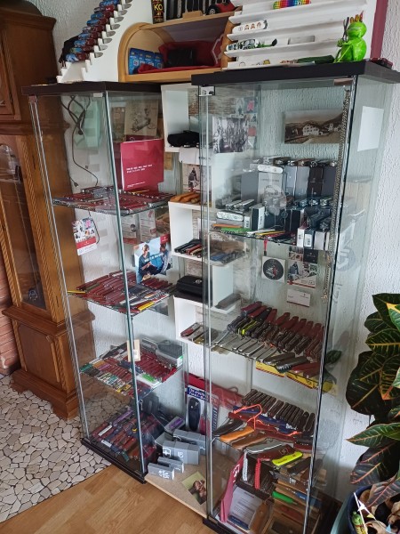 Ich habe meine Sammlung auf Tablets mit Schaumftoffeinlagen im Schrank. Wenn ich alle in Vitrinen aufstellen wollte bräuchte ich mehr Platz.